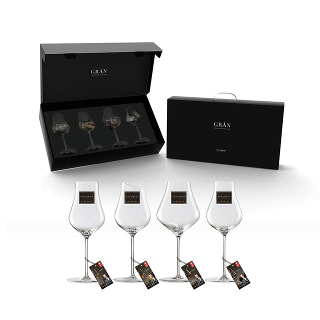 Drawing inspiration from grain, the base ingredient of whisky, The Gràn Collection represents a unique approach to the whisky tasting glass. Before, one single glass was used for all styles of whisky, an unthinkable approach in other beverage categories. Whisky covers a vast range of aroma and flavour, and The Gràn Collection features four tasting glasses optimized for key distinctions of whisky.