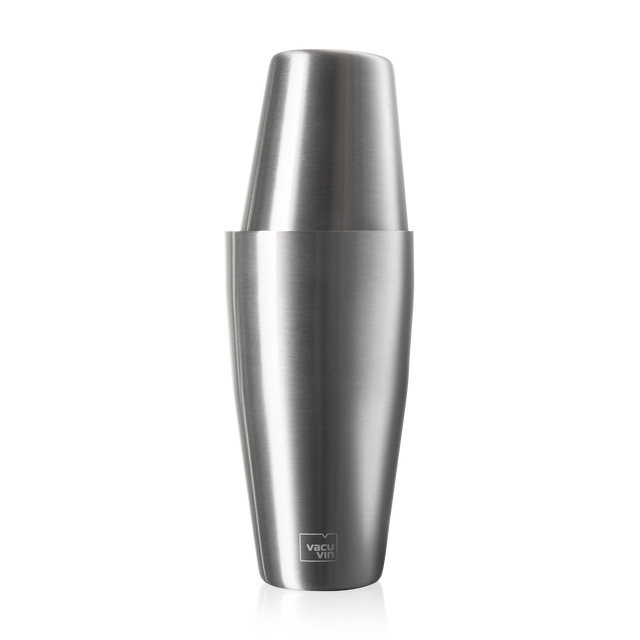 The Vacu Vin Tin on Tin Boston Cocktail Shaker ensures perfectly mixed cocktails with its 24oz and 18.5oz tins that create a leak-proof seal for vigorous shaking. Made from durable stainless steel, this sleek shaker is built to last and is favored by professionals. Effortlessly mix drinks, whether for a single serving or a round for friends.