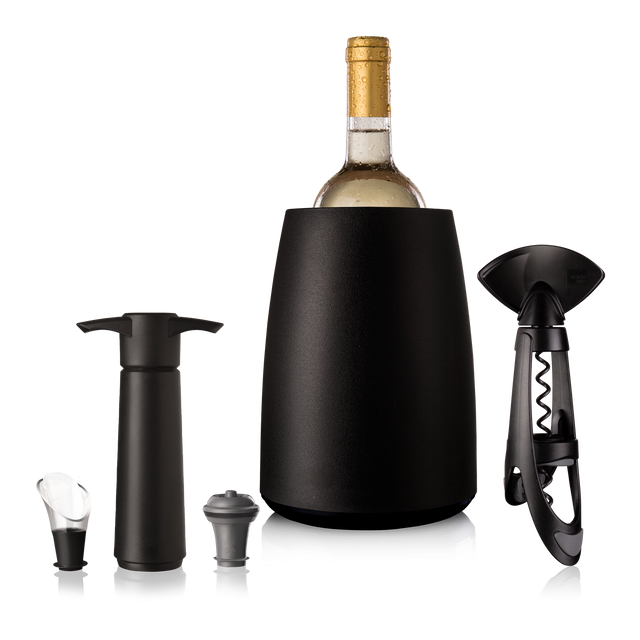 優雅的葡萄酒套裝包含 5 種 Vacu Vin 產品,可打開、冷藏、盛裝和儲存您的葡萄酒。送給各個級別的葡萄酒愛好者的完美禮物!