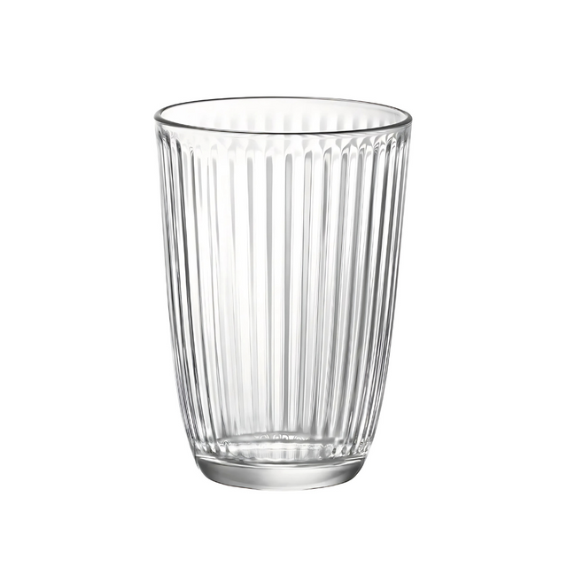 Introducing the glass from the Line Collection, a range of refined pieces that evoke the elegance of the Fifties while offering a contemporary twist. With a capacity of 390ml, this versatile glass is designed for serving cocktails, soft drinks, juices, and smoothies. Its dense grooves create a stylish striped pattern, adding a sparkling and casual touch to your table setting.